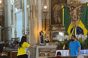 PROGRAME-SE 28/07/2025 09:57A imagem original do Senhor do Bonfim, trazida de Portugal ao Brasil há 280 anos, está exposta na basílica que leva o nome do santo, na Cidade Baixa, em Salvador, até o dia 10 de agosto. Ela foi transferida do altar-mor para um espaço mais próximo ao público, atraindo a atenção de baianos e turistas nacionais e estrangeiros que...
