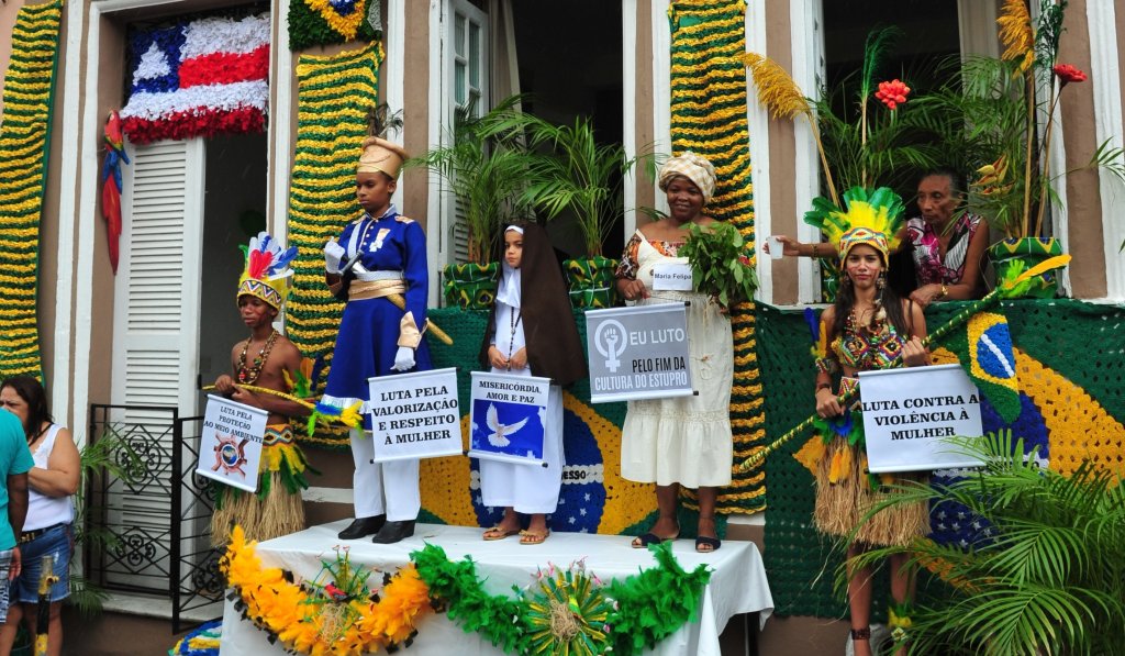A festa começa logo cedo, por volta das 7h30, com hasteamento de bandeiras e formalidades, para logo depois cair na espontaneidade que só o baiano sabe fazer, com suas frases de protestos, fantasias e fachadas enfeitadas (tem até concurso!). E a diversidade é linda de ver: famílias inteiras, idosos, crianças acompanham as fanfarras escolares, militares e bandas pelas ruas do bairro do Santo Antônio Além do Carmo, Pelourinho, onde há uma pausa, na Praça Municipal.